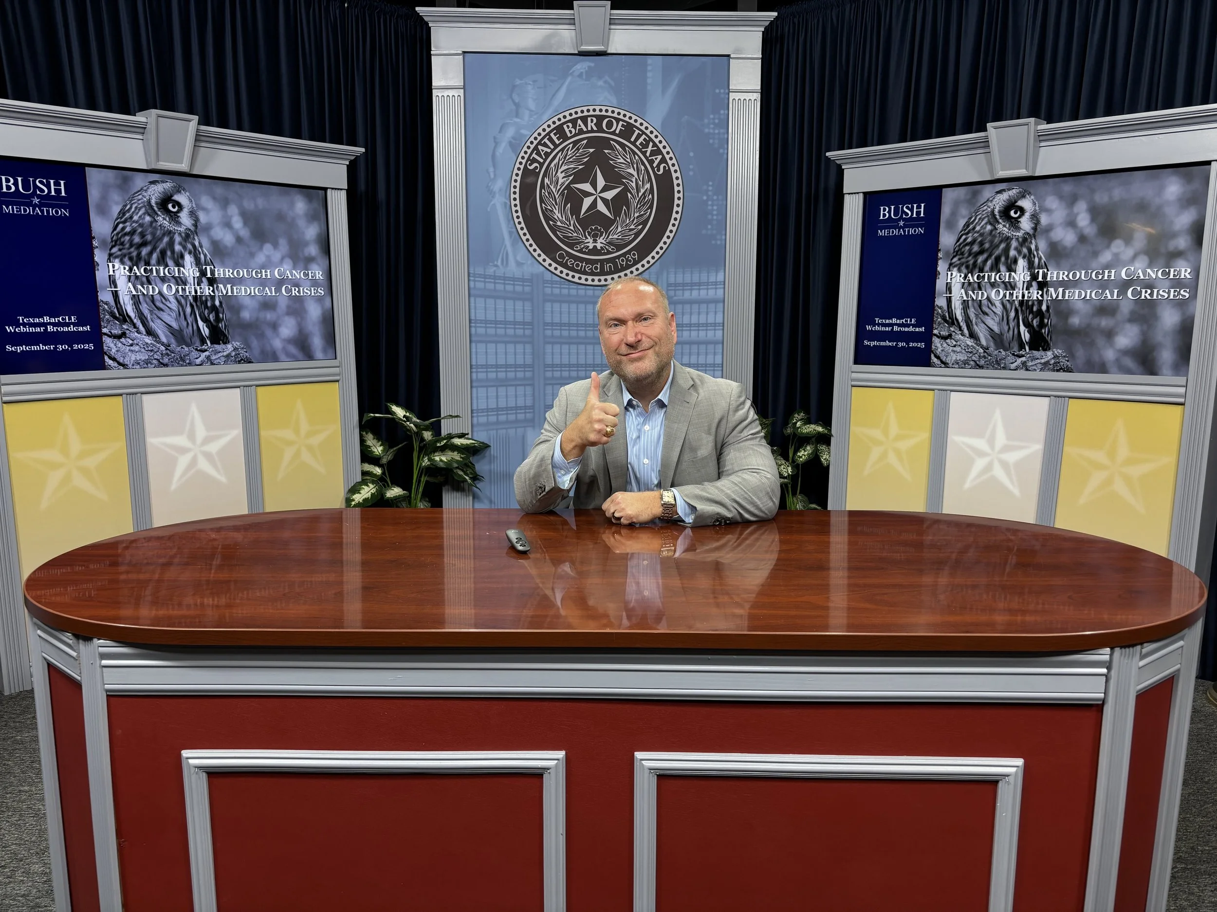 The Texas Bar broadcast and recorded Alan’s popular talk about practicing through cancer and other medical crises. He broadcast the ethics CLE live and recorded it with TexasBar CLE.